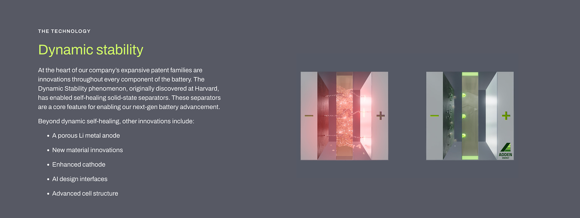 Website element showing how the Adden battery’s novel self-healing property will make EVs accessible to everyone in the near future.
